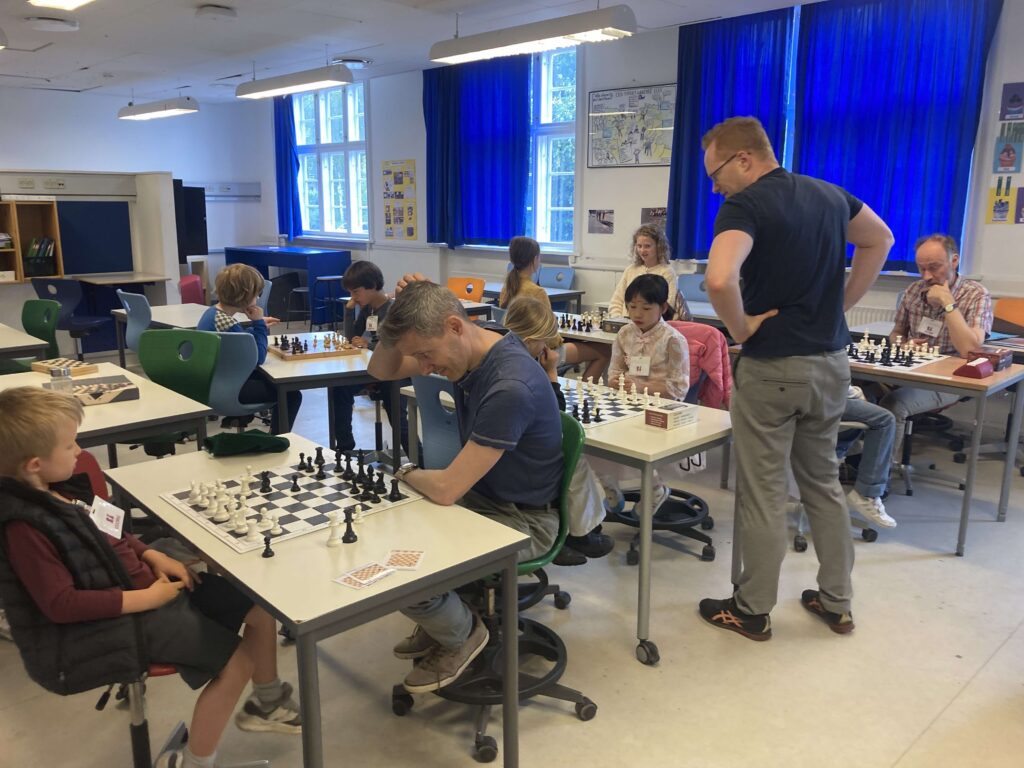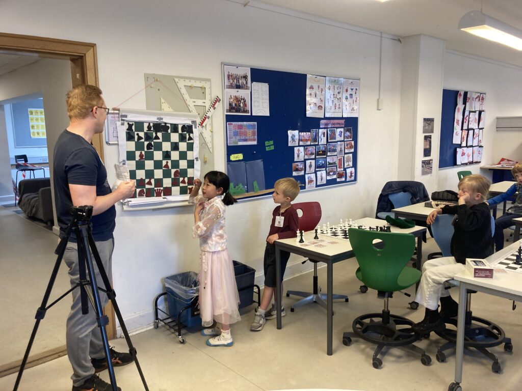 I lørdags rykkede vi indendørs, og startede ud med lidt fri spil, hvorefter Christian startede undervisningen, hvor børnene i fællesskab skulle finde det næste træk mod HolteKolle-Trolden og øve sig på feltnavnene. Herefter fulgte en spændende skaklektion om gaffelangreb/dobbeltangreb (hvor én brik truer to af modstanderens brikker på én gang), hvorefter børnene fik udleveret en række startopstillinger, som de kunne spille ud fra. Vi serverede brød og saft undervejs, og afsluttede med at give børnene det første klistermærke i deres diplom 🙂